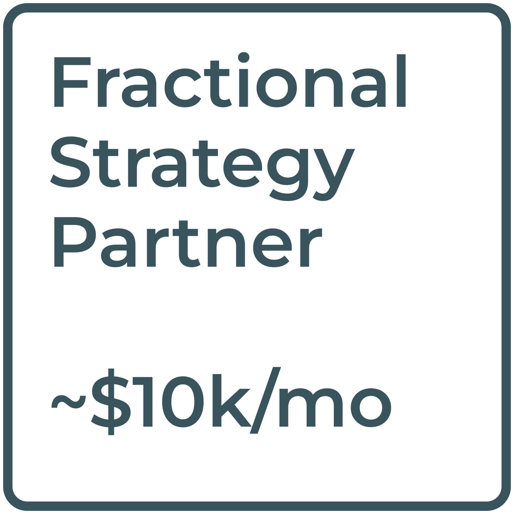Up to 20 hours/week of embedded leadership, strategy, and execution support.